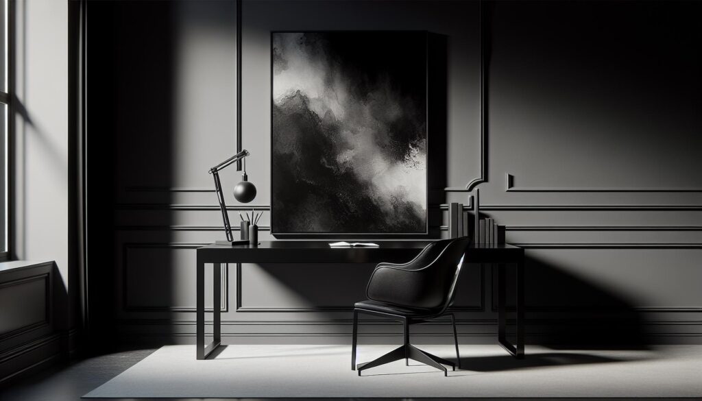 • Experiment with different textures and finishes within the black color spectrum